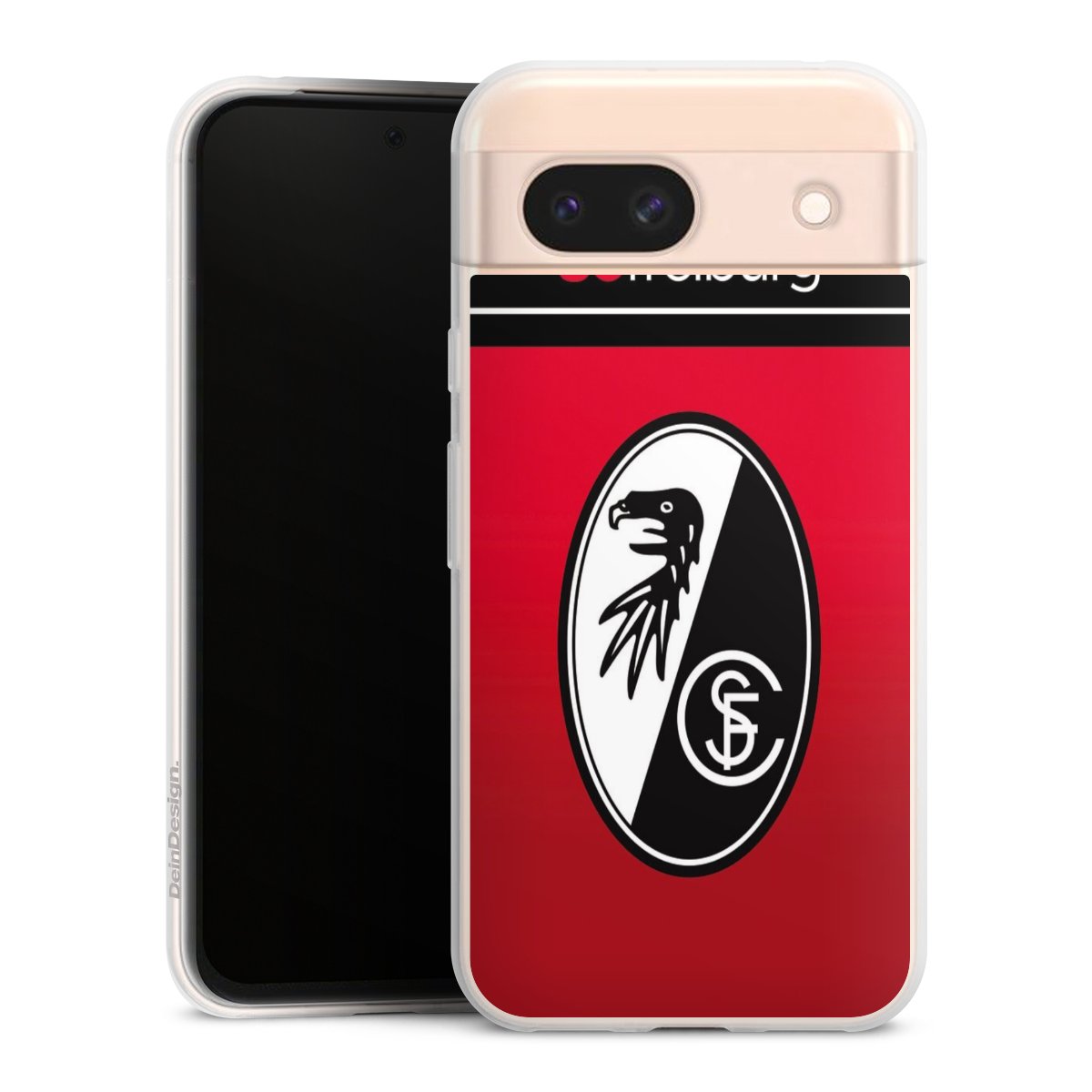 Bei DeinDesign kannst Du Dir eine individuelle SC-Freiburg-Handyhülle aussuchen, auf der das stilvolle schwarz-weiße Logo mit dem Greifenkopf zu sehen ist. Durch eine solche Hülle erhält Dein Smartphone ein unverkennbar individuelles Design. Der SC-Freiburg-Shop bietet lizensierte Fanartikel für alle Fans der Breisgau-Brasilianer.