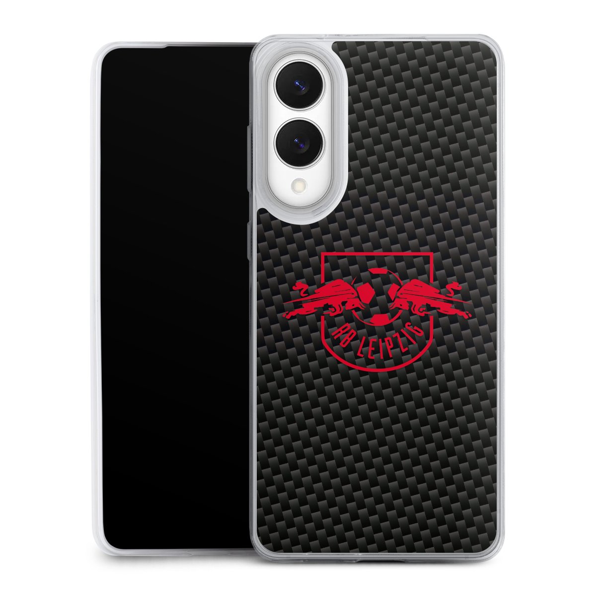 Rotes RB Leipzig Logo auf Carbonoptik