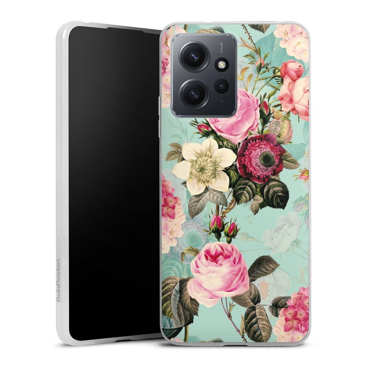 Türkisfarbene Rosentapete