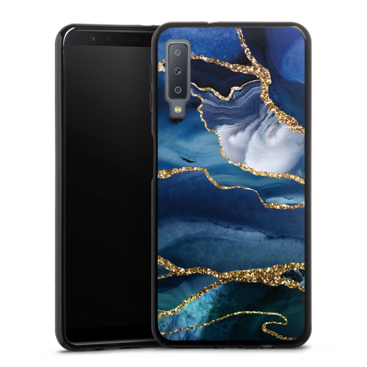 Blauer Marmor Gold Glitzer Look