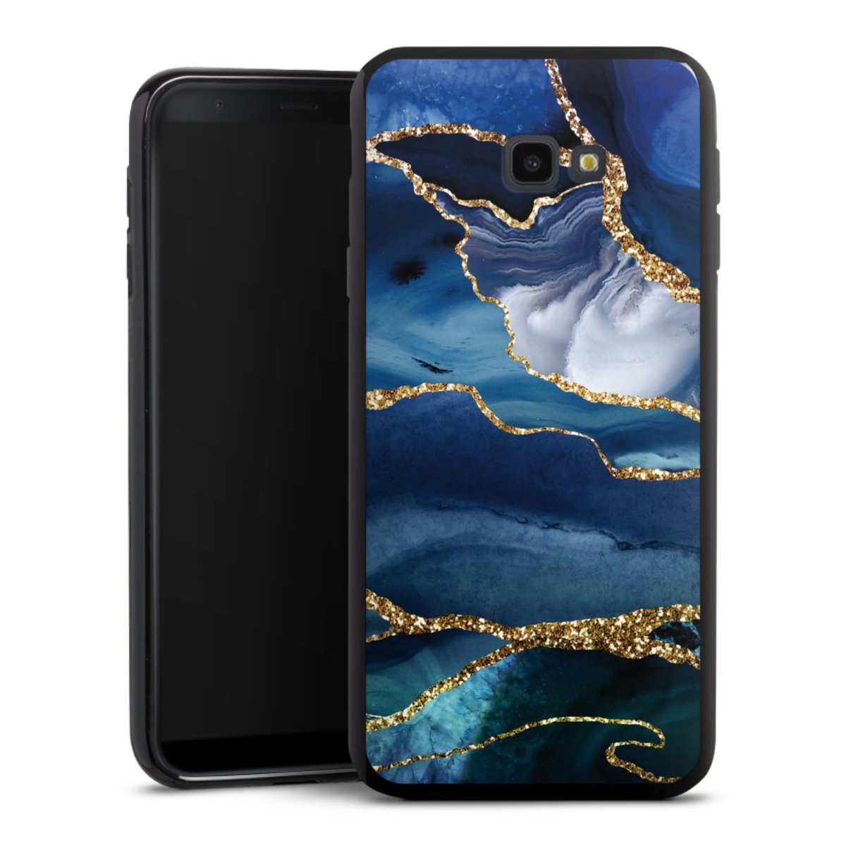 Blauer Marmor Gold Glitzer Look