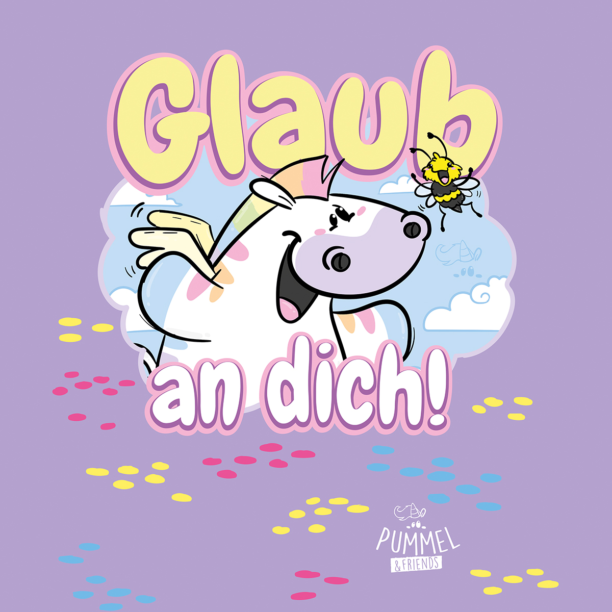 Das flauschige Pummeleinhorn hat ein Herz aus Gold und die Hände stets voller Cookies. In der Glitzerwelt lebt es zusammen mit seinen Freunden und genießt das Leben in vollen Zügen. Getreu dem Motto „Be real, not perfect!“ kann sich hier jeder wohlfühlen und wird für keine Macke verurteilt.