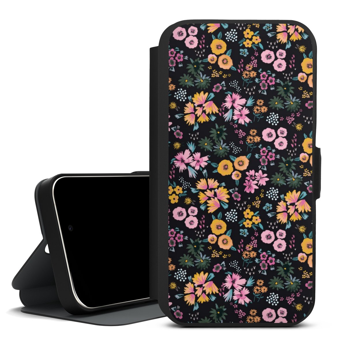 Kleine bunte Blumen Schwarz 2