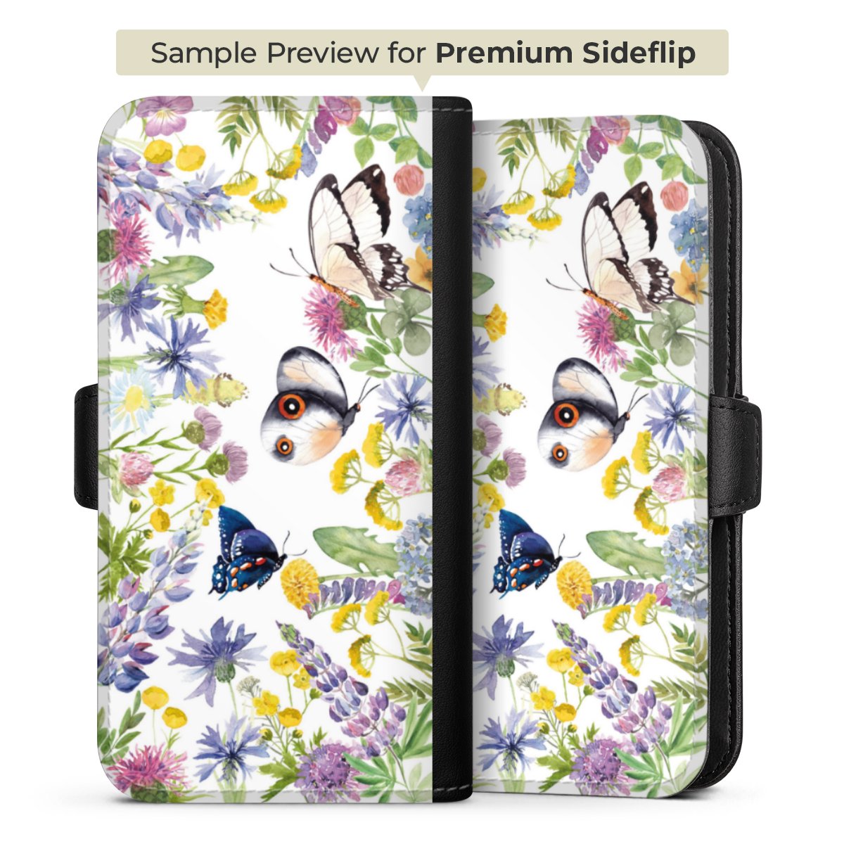 Bunte Frühlingsblumen und Schmetterlinge