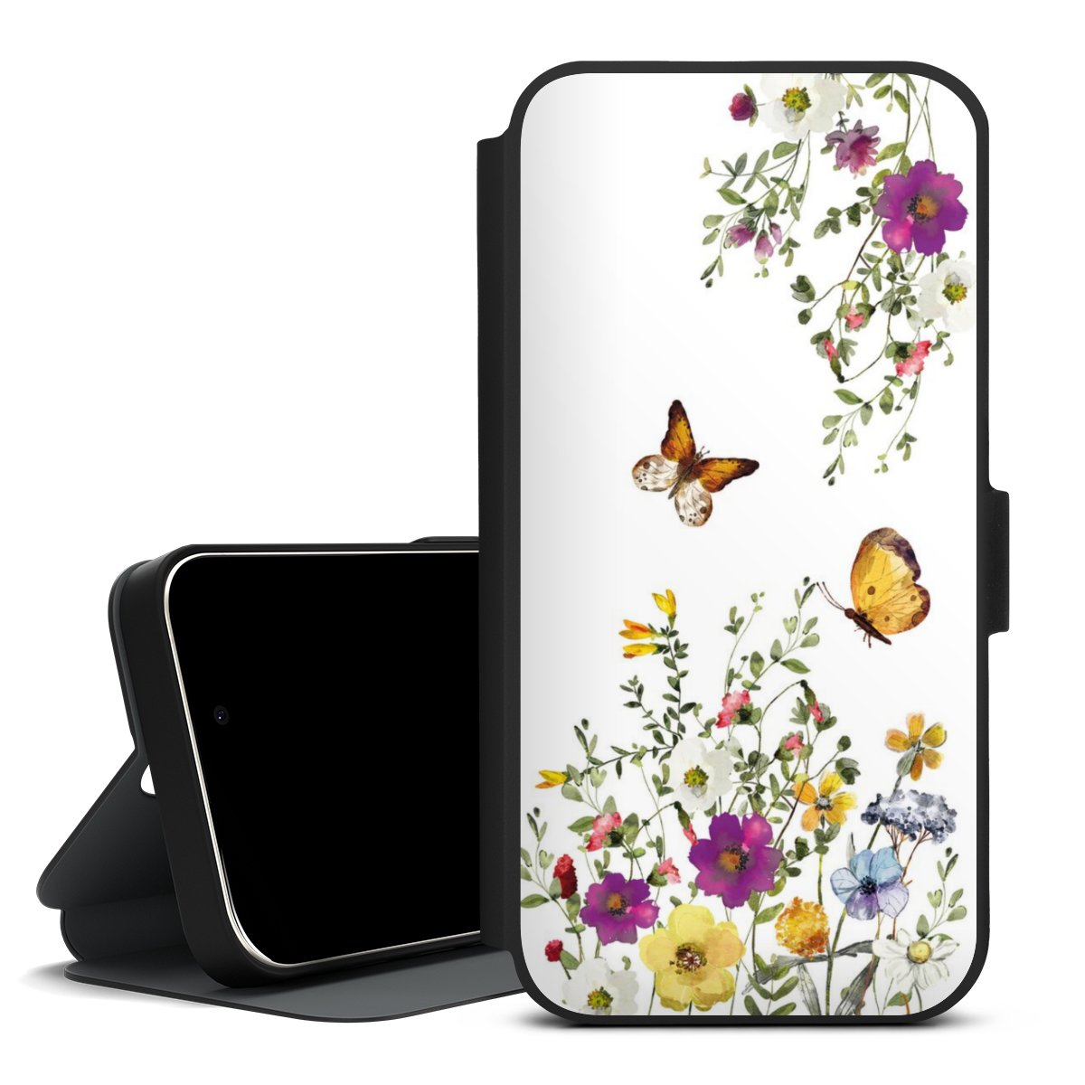 Schmetterlinge und bunte Blumen
