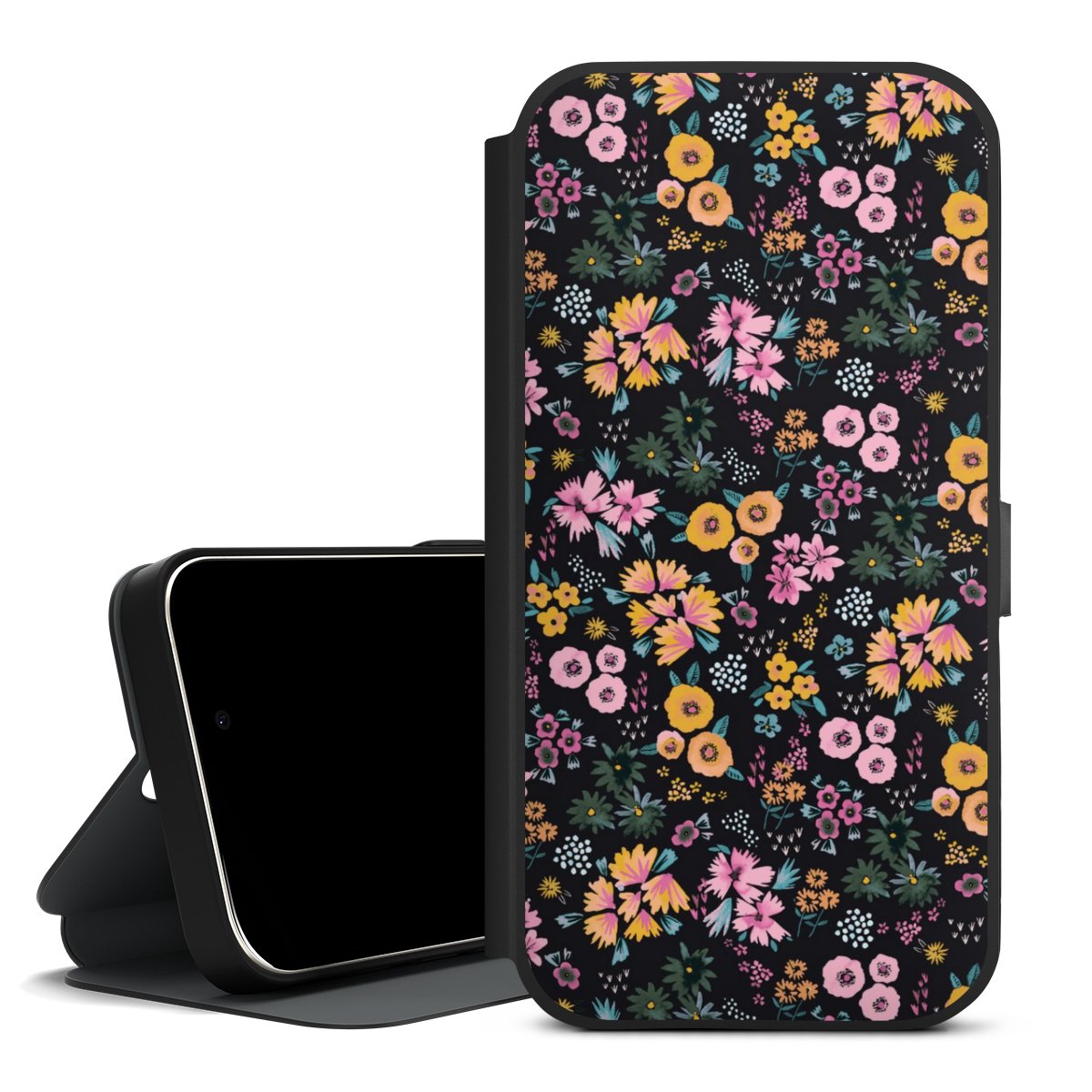 Kleine bunte Blumen Schwarz 2