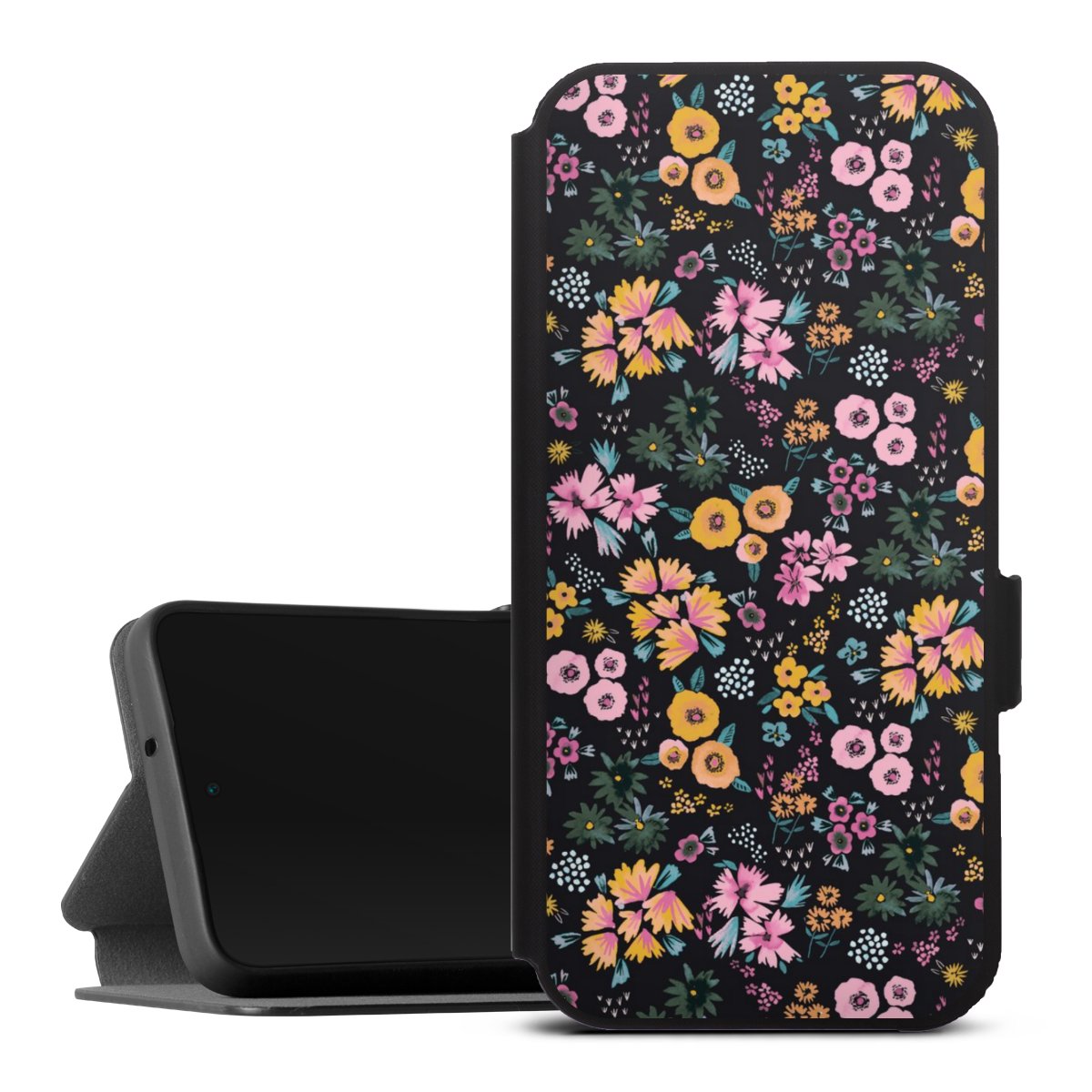 Kleine bunte Blumen Schwarz 2