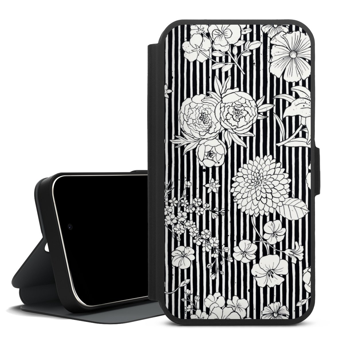 Blumen und Streifen Schwarz und Weiß