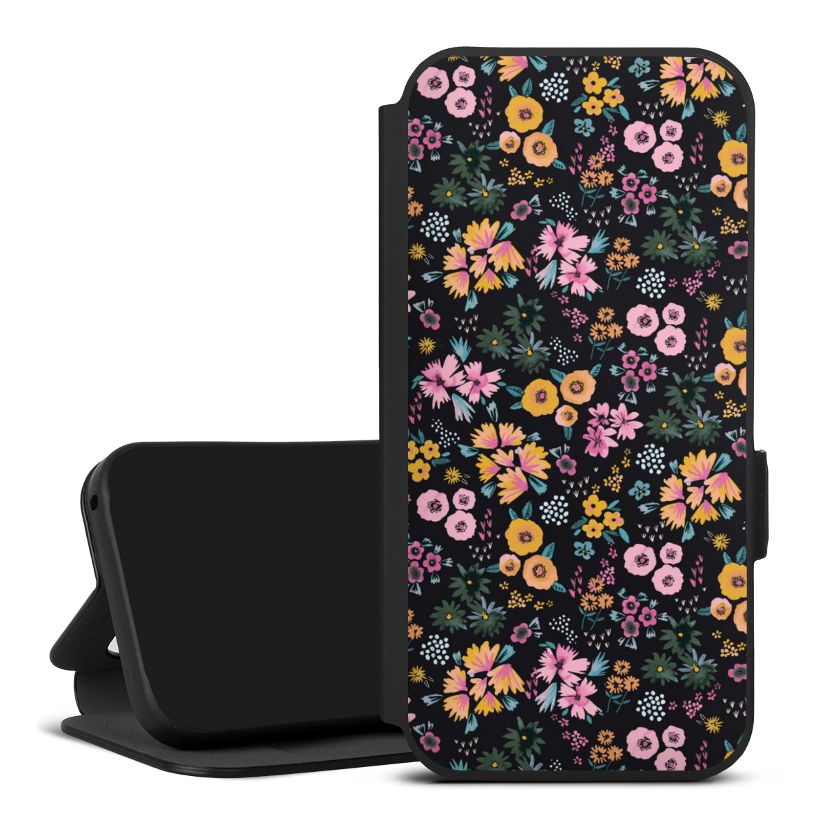 Kleine bunte Blumen Schwarz 2
