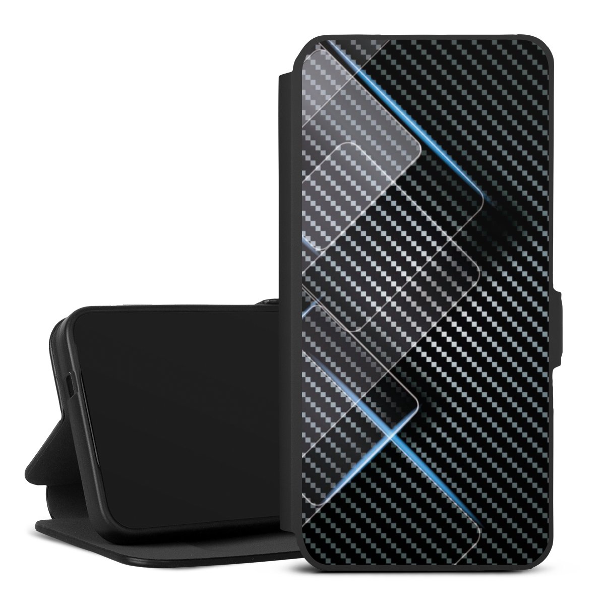 Blaue Linien auf Karbon