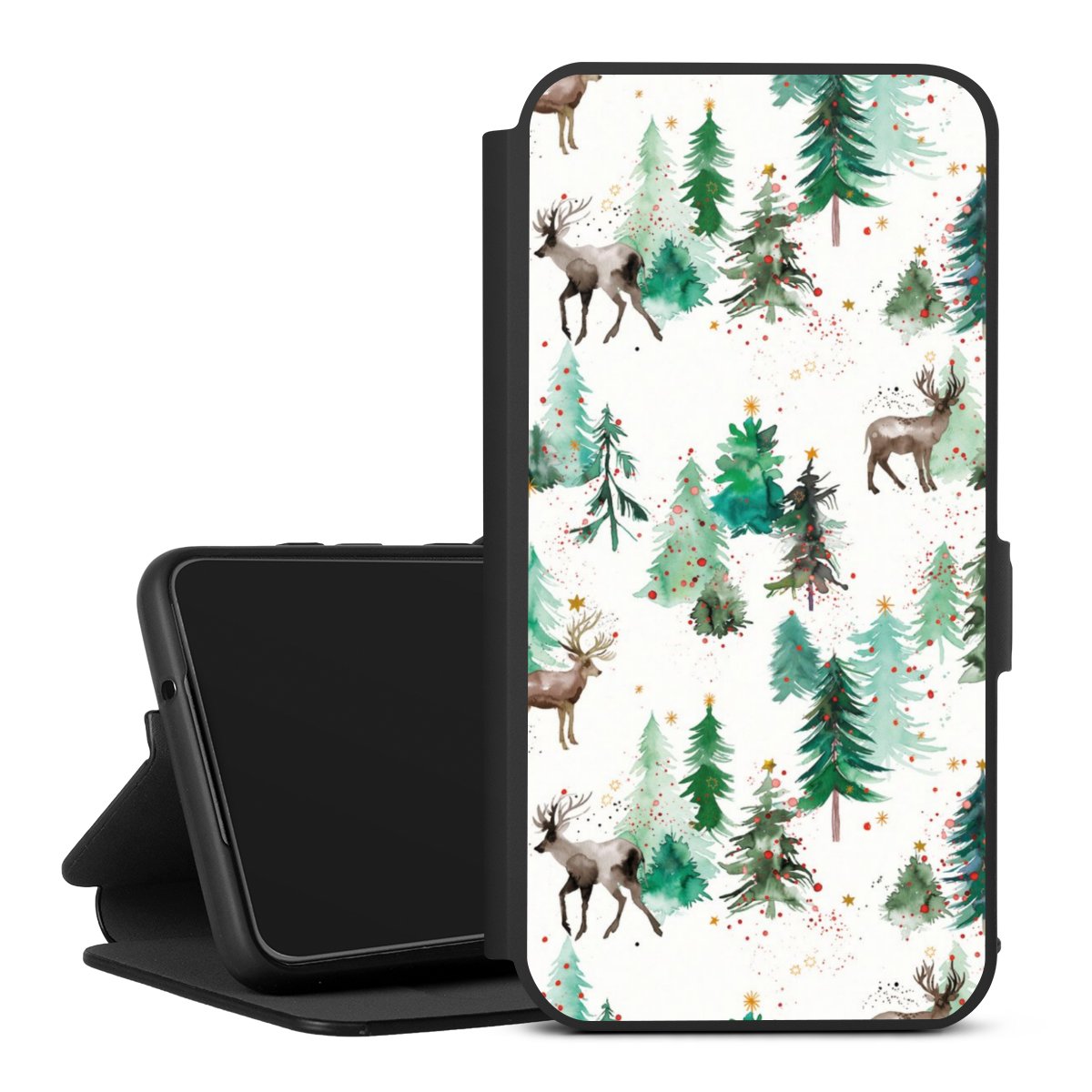 Hirsche und Winterweihnachtsbäume
