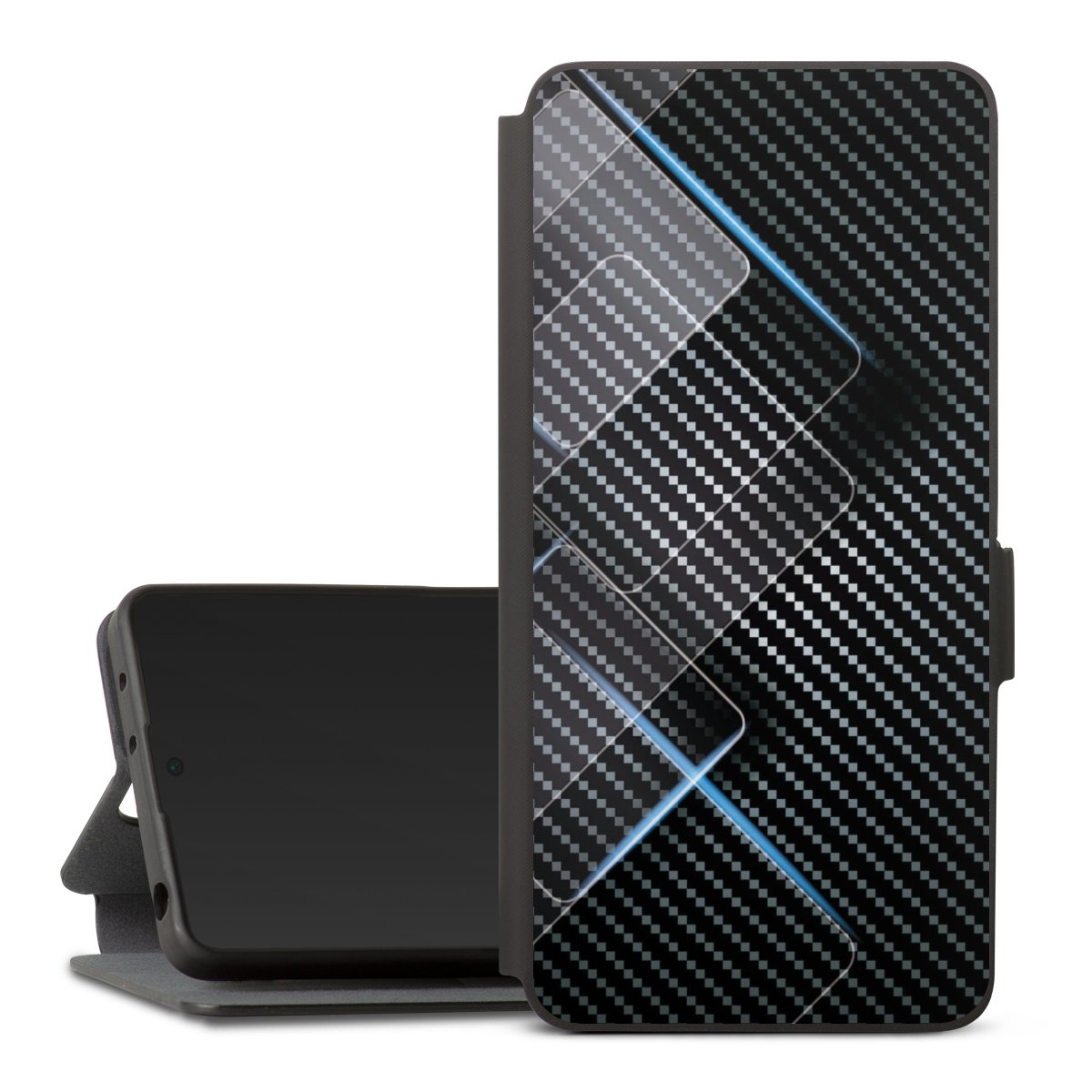 Blaue Linien auf Karbon