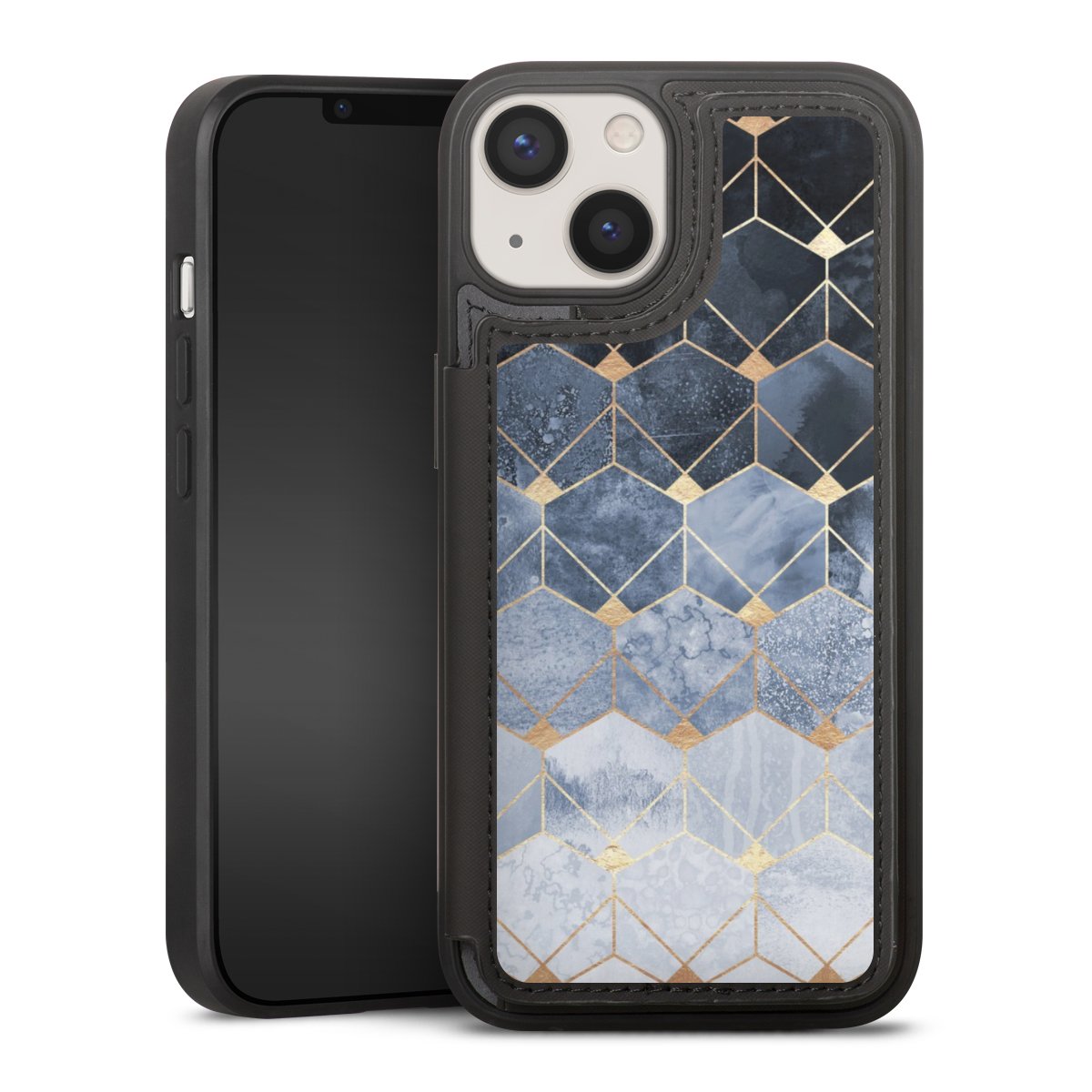 Blaue Sechsecke und Diamanten Golddruck