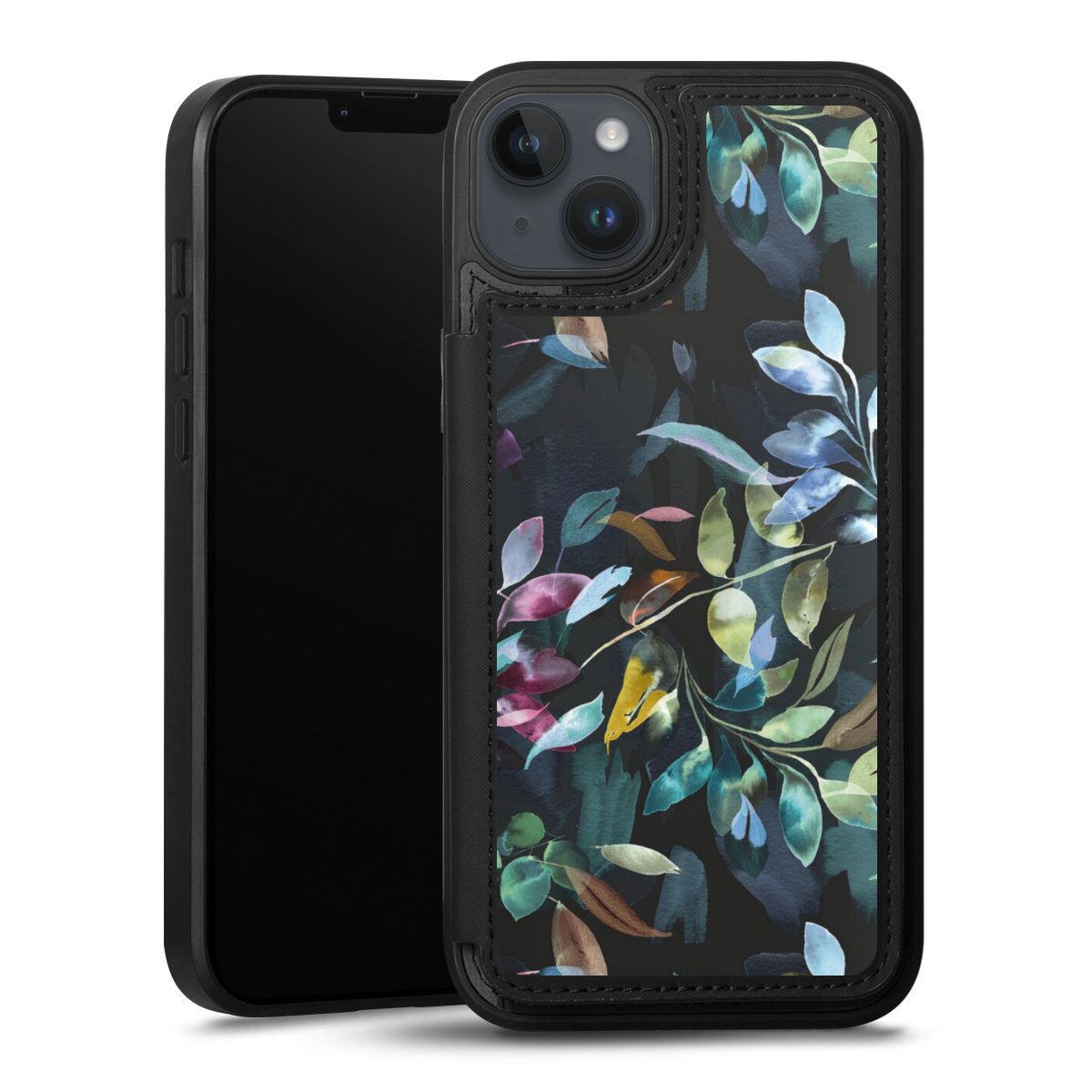 Mystische Aquarellblätter schwarz