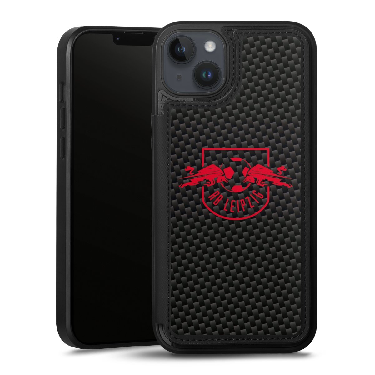 Rotes RB Leipzig Logo auf Carbonoptik