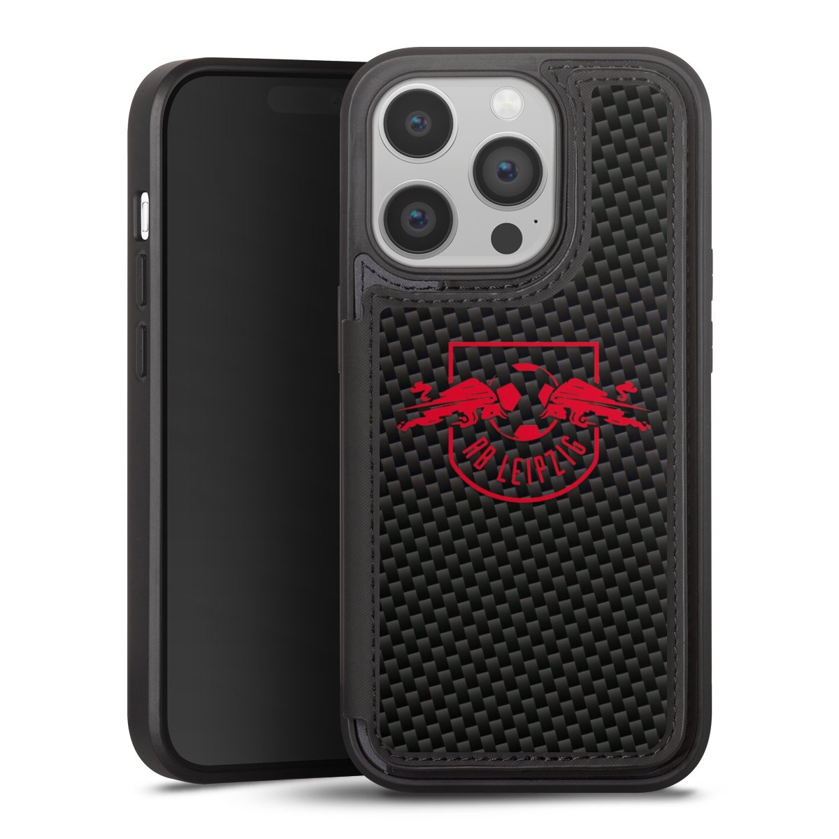 Rotes RB Leipzig Logo auf Carbonoptik