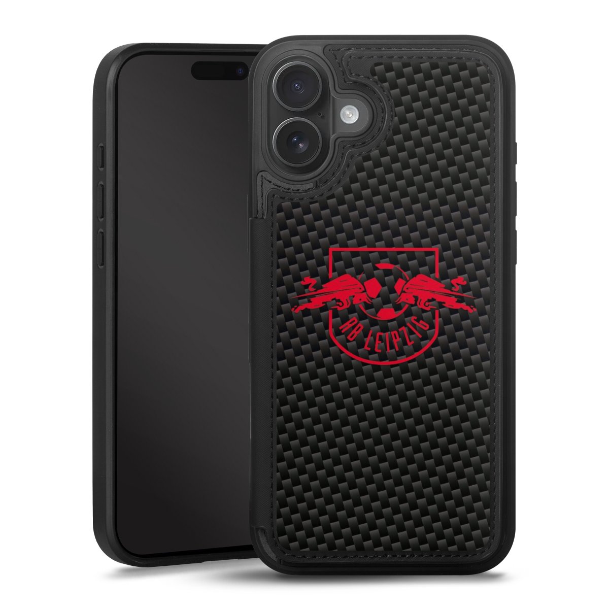 Rotes RB Leipzig Logo auf Carbonoptik