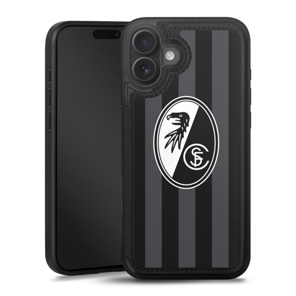 Bei DeinDesign kannst Du Dir eine individuelle SC-Freiburg-Handyhülle aussuchen, auf der das stilvolle schwarz-weiße Logo mit dem Greifenkopf zu sehen ist. Durch eine solche Hülle erhält Dein Smartphone ein unverkennbar individuelles Design. Der SC-Freiburg-Shop bietet lizensierte Fanartikel für alle Fans der Breisgau-Brasilianer.
