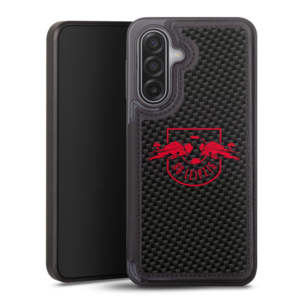 Rotes RB Leipzig Logo auf Carbonoptik