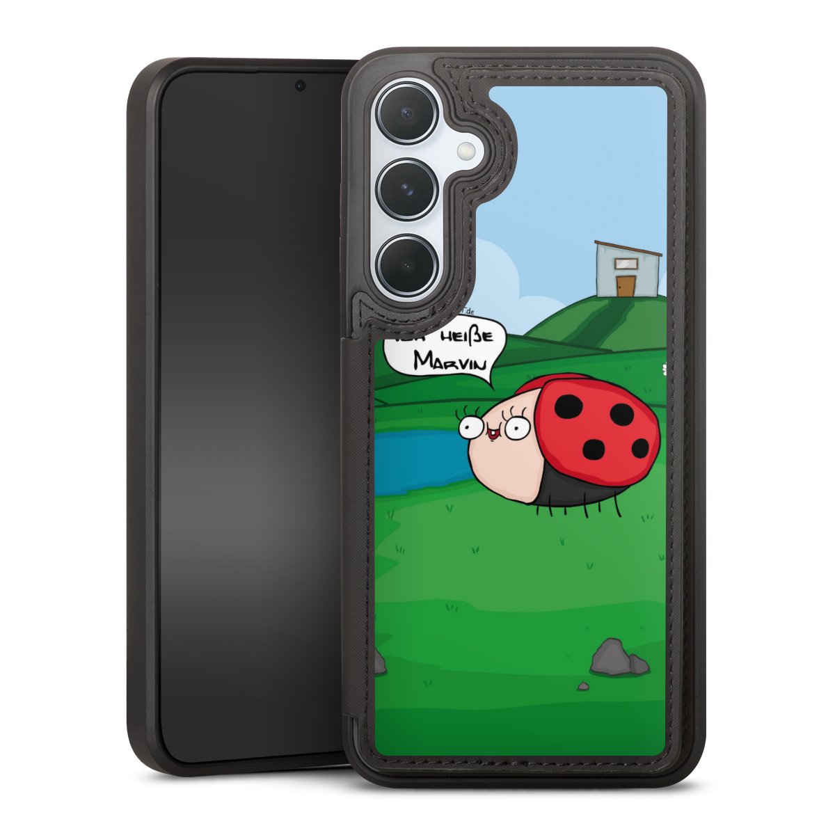 Ob Du Dich nun für Marvin, Günther das Schaf oder doch lieber für die dauerbekiffte Cannabiene entscheidest. Mit einem Motiv von DirtyWhitePaint wird Dein Smartphonen selbst zum Comic.