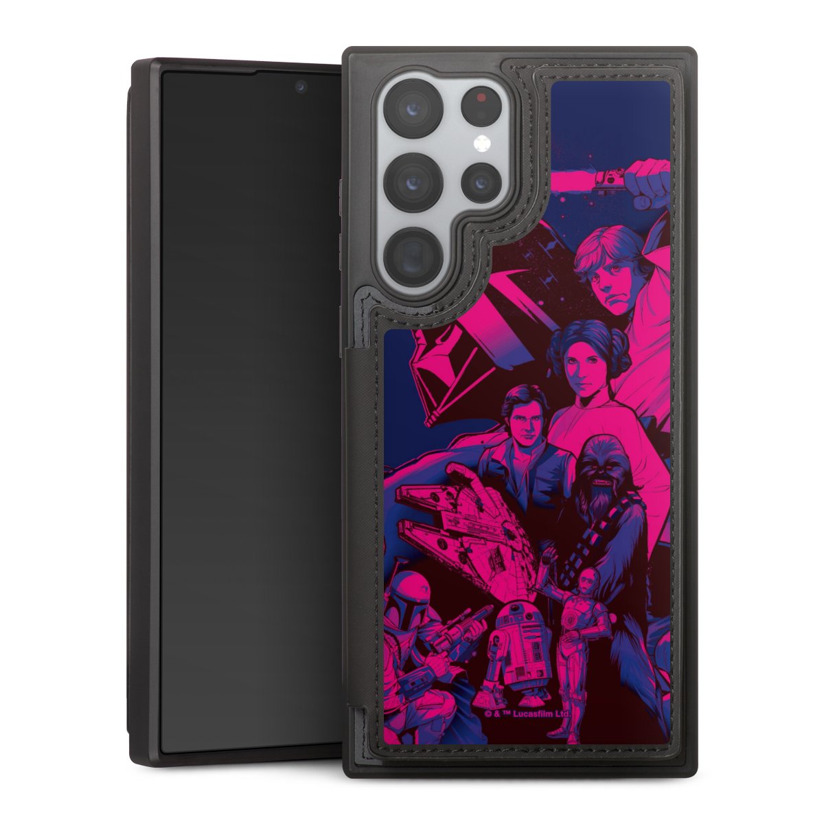 Darth Vader, C3PO, R2D2 und Meister Yoda findest Du in unserem Star Wars Shop auf DeinDesign. Natürlich gibt es auch Star Wars Handyhüllen mit den legendären Charakteren Luke Skywalker, Prinzessin Leia und Han Solo, den Helden der ersten Saga. Wer jedoch die Hauptfiguren der neuen Star Wars Filme ins Herz geschlossen hat, kann auch Finn und Rey mit ihren mächtigen Waffen auf der Rückseite seines Smartphones haben. Die vielseitigen Schutzhüllen in verschiedenen Ausführungen sind das perfekte Geschenk für alle Star Wars Fans, die ihrem Smartphone eine individuelle Note verleihen wollen.