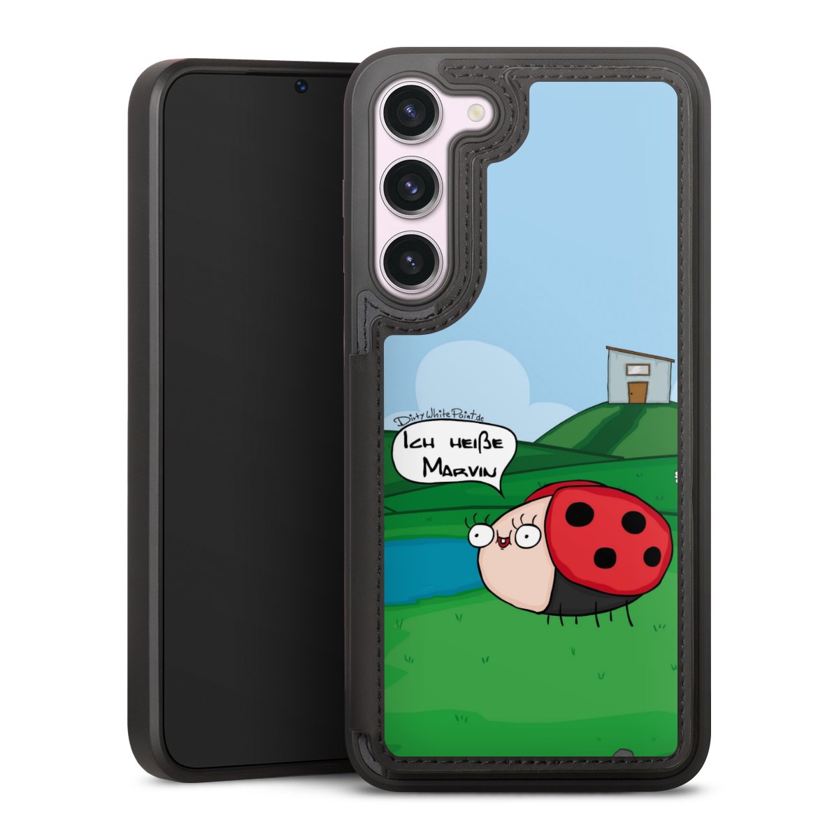 Ob Du Dich nun für Marvin, Günther das Schaf oder doch lieber für die dauerbekiffte Cannabiene entscheidest. Mit einem Motiv von DirtyWhitePaint wird Dein Smartphonen selbst zum Comic.