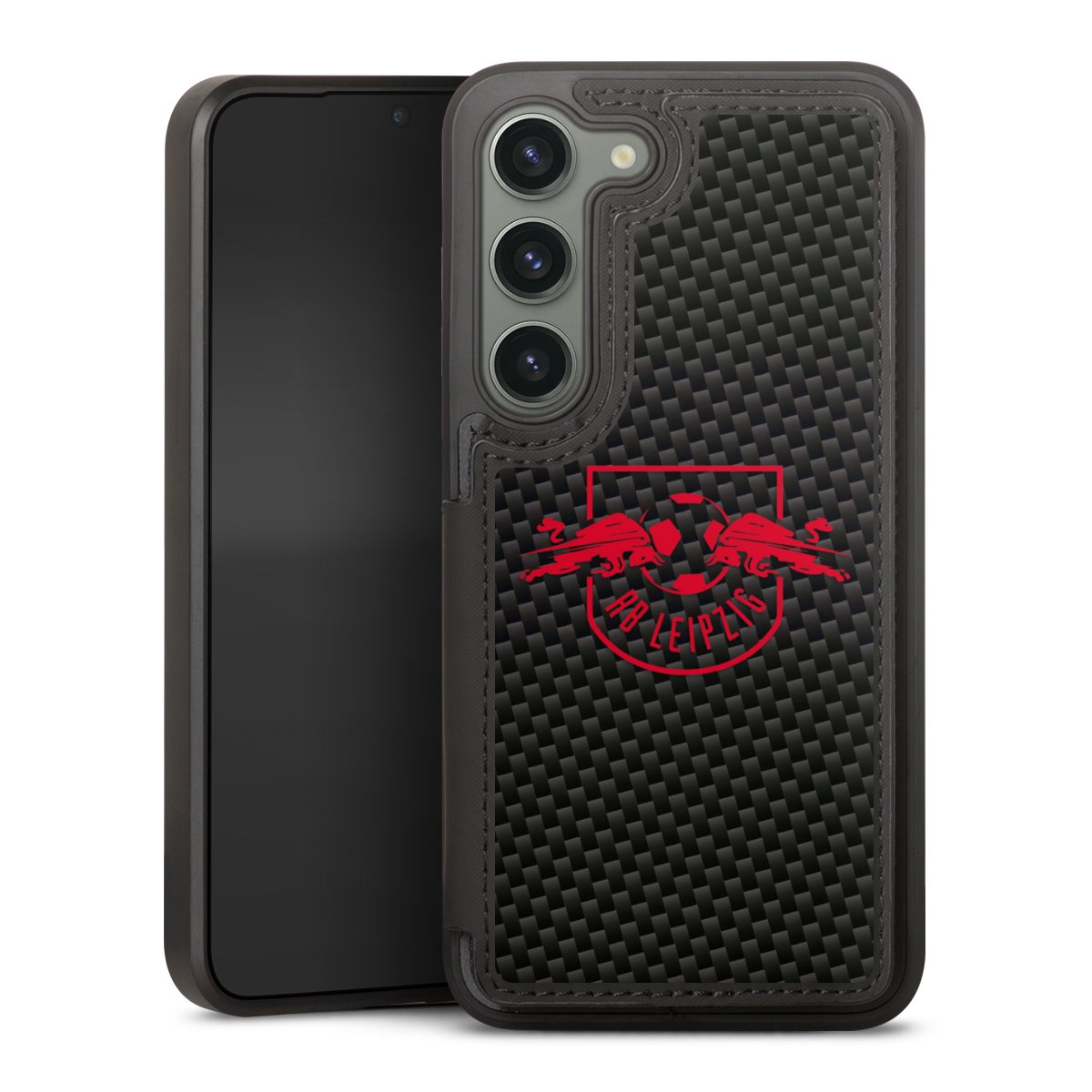 Rotes RB Leipzig Logo auf Carbonoptik