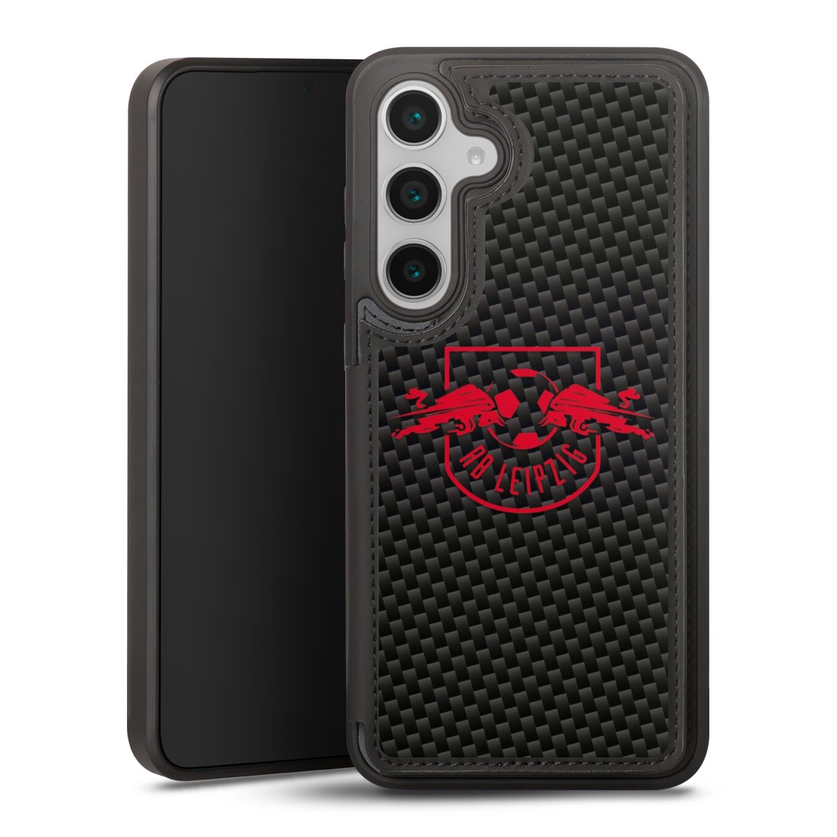 Rotes RB Leipzig Logo auf Carbonoptik