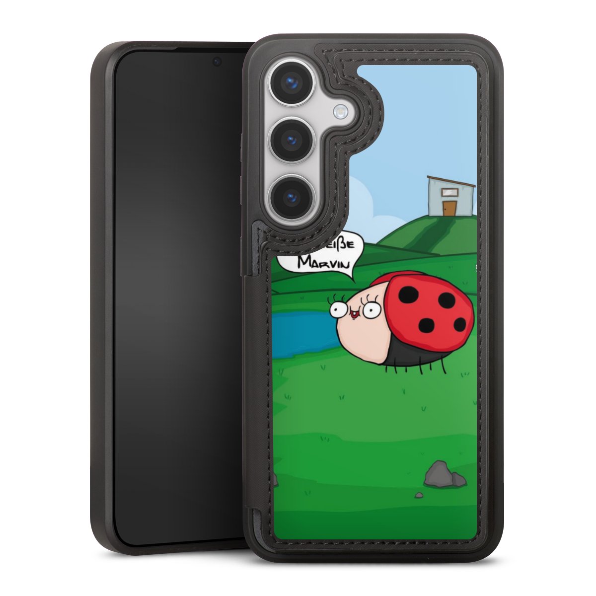 Ob Du Dich nun für Marvin, Günther das Schaf oder doch lieber für die dauerbekiffte Cannabiene entscheidest. Mit einem Motiv von DirtyWhitePaint wird Dein Smartphonen selbst zum Comic.