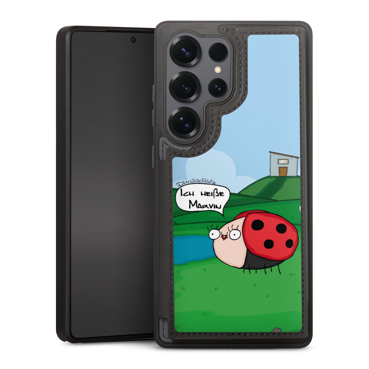 Ob Du Dich nun für Marvin, Günther das Schaf oder doch lieber für die dauerbekiffte Cannabiene entscheidest. Mit einem Motiv von DirtyWhitePaint wird Dein Smartphonen selbst zum Comic.