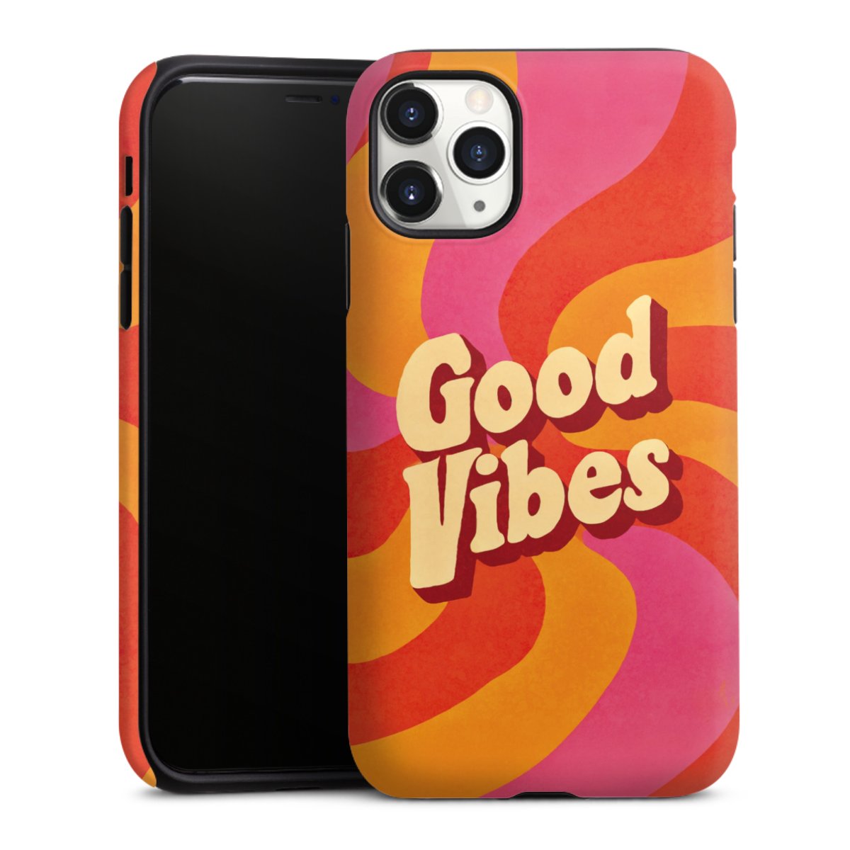 Unsere sicherste Schutzhülle vereint die Vorteile der Silikonhülle mit den Vorzügen des Premium Cases und besteht aus zwei Teilen: Innen federt der flexible Silikonkern aus robustem TPU (thermoplastisches Polyurethan) zuverlässig Stöße und Stürze ab, außen sorgt die widerstandsfähige und langlebige Hartschale aus Polycarbonat für zusätzliche Stabilität. Die Oberfläche der insgesamt 2,6 mm starken Hülle fühlt sich angenehm glatt an und macht das Tough Case zu einem echten Handschmeichler. Die Handyhülle ist in glänzend und matt erhältlich, der Silikoneinleger ist Schwarz.