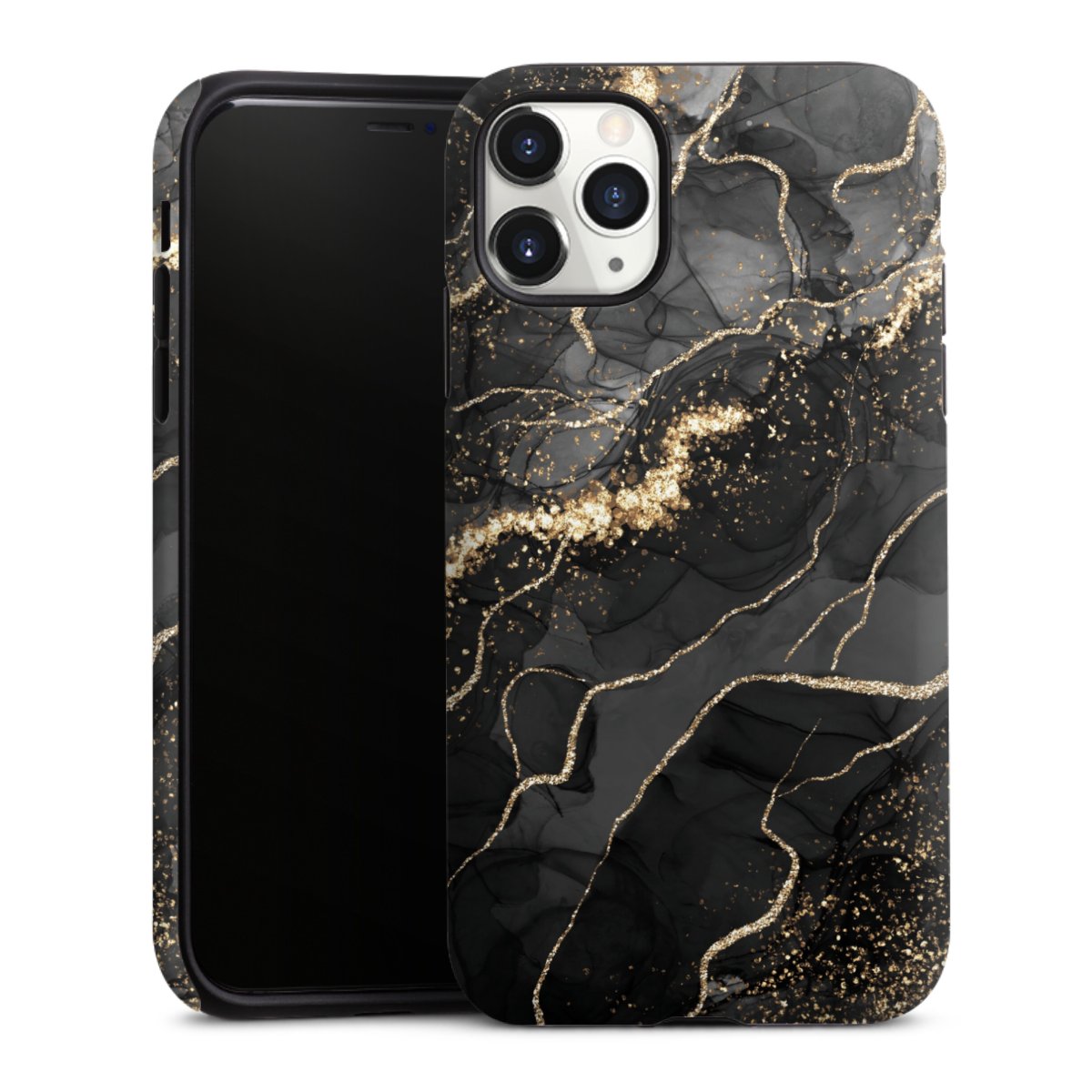 Unsere sicherste Schutzhülle vereint die Vorteile der Silikonhülle mit den Vorzügen des Premium Cases und besteht aus zwei Teilen: Innen federt der flexible Silikonkern aus robustem TPU (thermoplastisches Polyurethan) zuverlässig Stöße und Stürze ab, außen sorgt die widerstandsfähige und langlebige Hartschale aus Polycarbonat für zusätzliche Stabilität. Die Oberfläche der insgesamt 2,6 mm starken Hülle fühlt sich angenehm glatt an und macht das Tough Case zu einem echten Handschmeichler. Die Handyhülle ist in glänzend und matt erhältlich, der Silikoneinleger ist Schwarz.