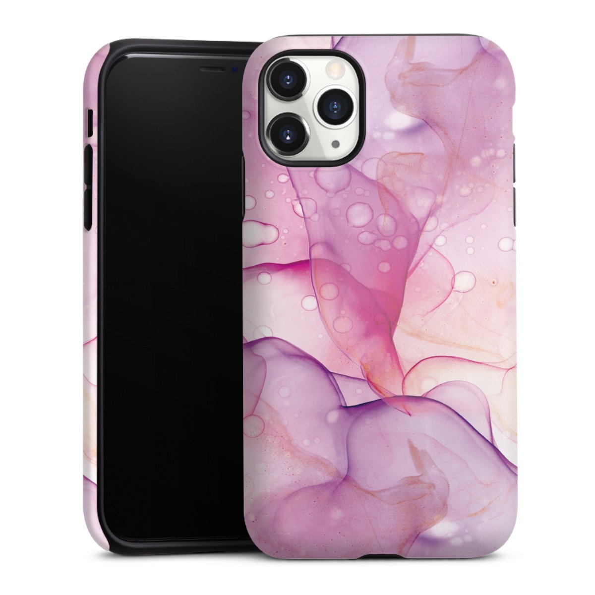 Unsere sicherste Schutzhülle vereint die Vorteile der Silikonhülle mit den Vorzügen des Premium Cases und besteht aus zwei Teilen: Innen federt der flexible Silikonkern aus robustem TPU (thermoplastisches Polyurethan) zuverlässig Stöße und Stürze ab, außen sorgt die widerstandsfähige und langlebige Hartschale aus Polycarbonat für zusätzliche Stabilität. Die Oberfläche der insgesamt 2,6 mm starken Hülle fühlt sich angenehm glatt an und macht das Tough Case zu einem echten Handschmeichler. Die Handyhülle ist in glänzend und matt erhältlich, der Silikoneinleger ist Schwarz.