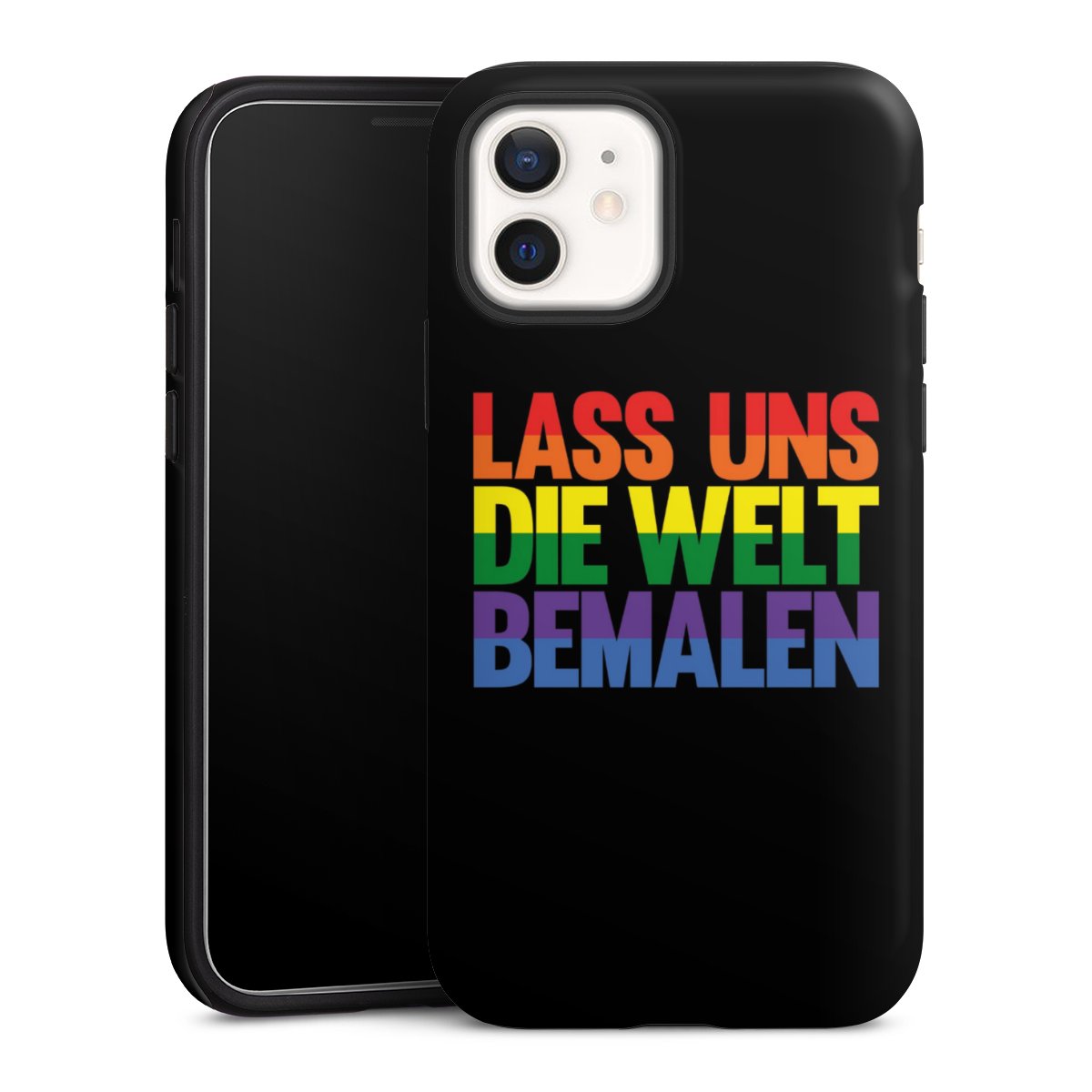 Bei dieser Handyhülle nutzen wird den besonders langlebigen Sublimationsdruck. Dieses raffinierte Druckverfahren sticht durch sein hochwertiges, gestochen scharfes Druckbild in brillanten Farben hervor. Der Druckbereich umfasst die ganze Hartschale inklusive der Ecken und Kanten, lediglich der Silikon-Einleger bleibt einfarbig schwarz. Wähle für Dein Design entweder eines unserer exklusiven Shop-Motive, oder werde kreativ und gestalte Dein Wunschdesign zum Beispiel mit Fotos und Overlays selbst.