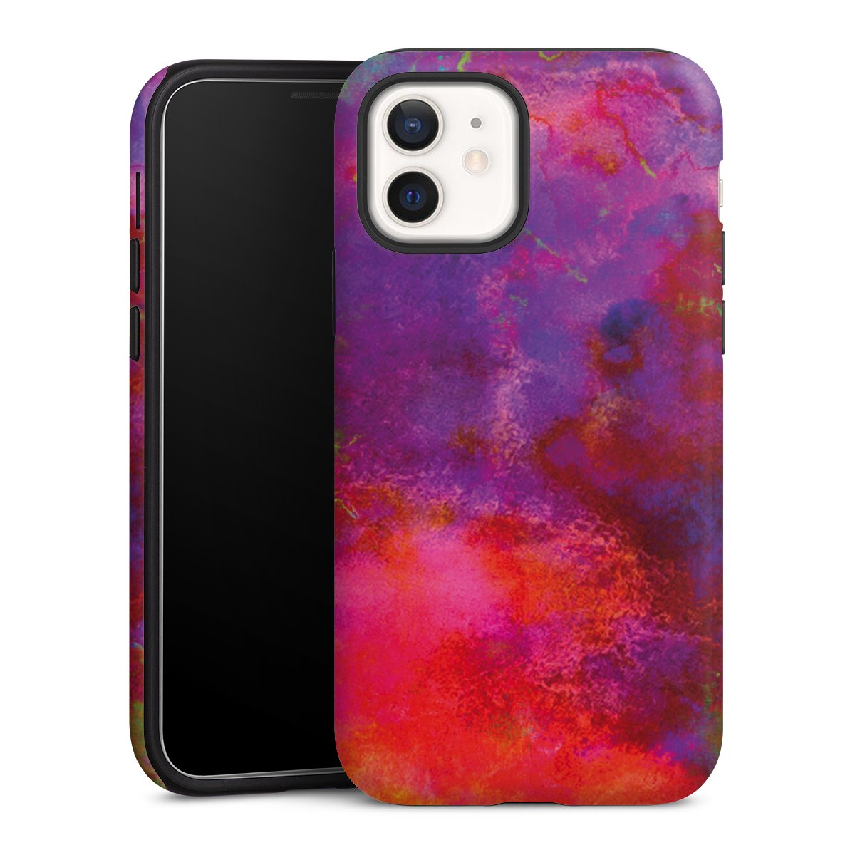 Bei dieser Handyhülle nutzen wird den besonders langlebigen Sublimationsdruck. Dieses raffinierte Druckverfahren sticht durch sein hochwertiges, gestochen scharfes Druckbild in brillanten Farben hervor. Der Druckbereich umfasst die ganze Hartschale inklusive der Ecken und Kanten, lediglich der Silikon-Einleger bleibt einfarbig schwarz. Wähle für Dein Design entweder eines unserer exklusiven Shop-Motive, oder werde kreativ und gestalte Dein Wunschdesign zum Beispiel mit Fotos und Overlays selbst.