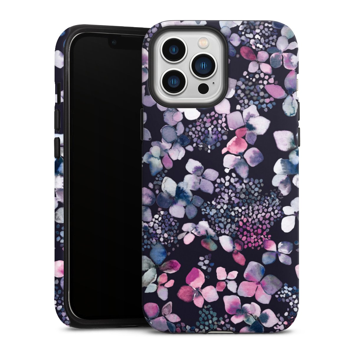 Bei dieser Handyhülle nutzen wird den besonders langlebigen Sublimationsdruck. Dieses raffinierte Druckverfahren sticht durch sein hochwertiges, gestochen scharfes Druckbild in brillanten Farben hervor. Der Druckbereich umfasst die ganze Hartschale inklusive der Ecken und Kanten, lediglich der Silikon-Einleger bleibt einfarbig schwarz. Wähle für Dein Design entweder eines unserer exklusiven Shop-Motive, oder werde kreativ und gestalte Dein Wunschdesign zum Beispiel mit Fotos und Overlays selbst.
