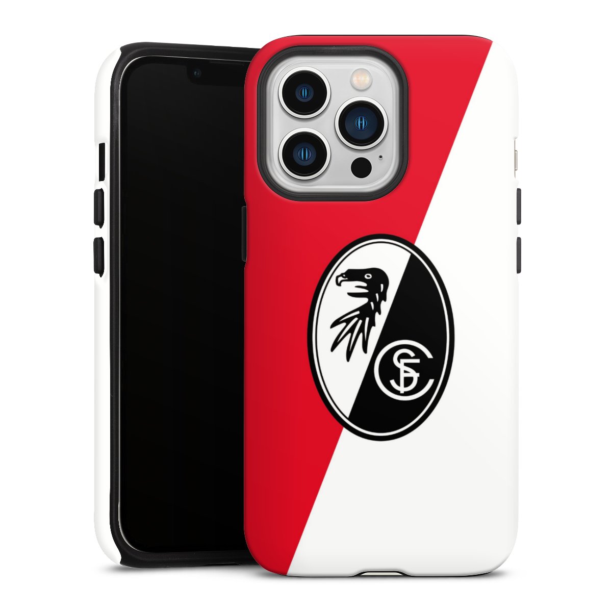 Bei DeinDesign kannst Du Dir eine individuelle SC-Freiburg-Handyhülle aussuchen, auf der das stilvolle schwarz-weiße Logo mit dem Greifenkopf zu sehen ist. Durch eine solche Hülle erhält Dein Smartphone ein unverkennbar individuelles Design. Der SC-Freiburg-Shop bietet lizensierte Fanartikel für alle Fans der Breisgau-Brasilianer.