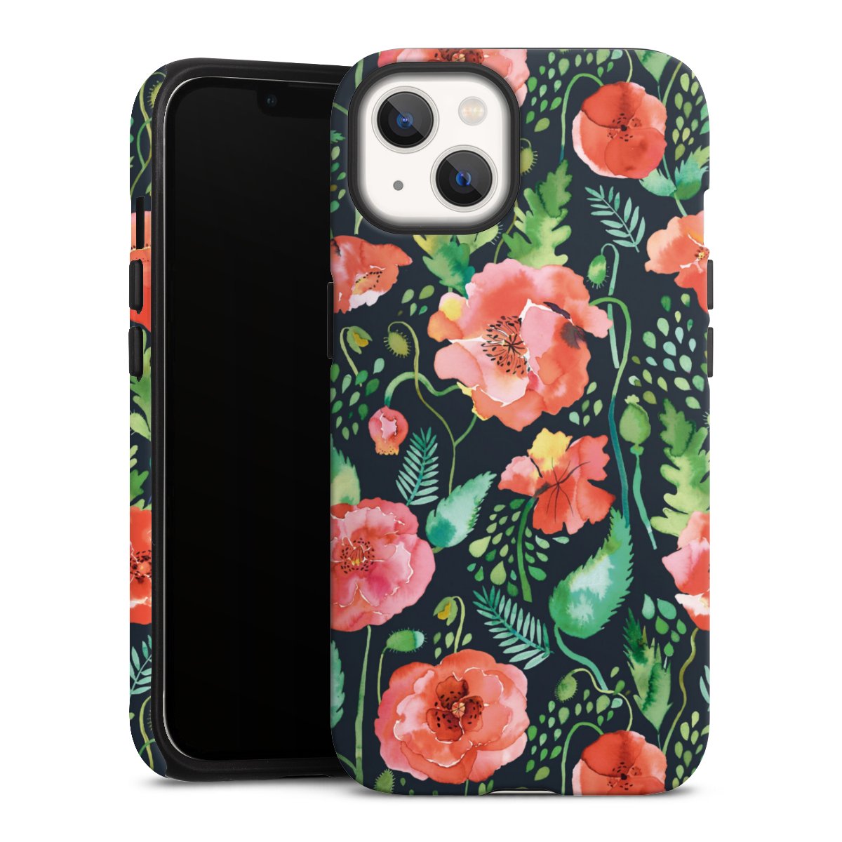 Unsere sicherste Schutzhülle vereint die Vorteile der Silikonhülle mit den Vorzügen des Premium Cases und besteht aus zwei Teilen: Innen federt der flexible Silikonkern aus robustem TPU (thermoplastisches Polyurethan) zuverlässig Stöße und Stürze ab, außen sorgt die widerstandsfähige und langlebige Hartschale aus Polycarbonat für zusätzliche Stabilität. Die Oberfläche der insgesamt 2,6 mm starken Hülle fühlt sich angenehm glatt an und macht das Tough Case zu einem echten Handschmeichler. Die Handyhülle ist in glänzend und matt erhältlich, der Silikoneinleger ist Schwarz.
