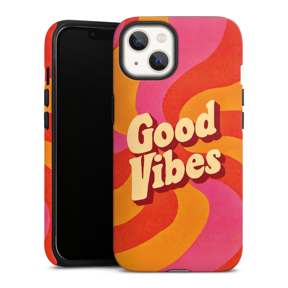 Bei dieser Handyhülle nutzen wird den besonders langlebigen Sublimationsdruck. Dieses raffinierte Druckverfahren sticht durch sein hochwertiges, gestochen scharfes Druckbild in brillanten Farben hervor. Der Druckbereich umfasst die ganze Hartschale inklusive der Ecken und Kanten, lediglich der Silikon-Einleger bleibt einfarbig schwarz. Wähle für Dein Design entweder eines unserer exklusiven Shop-Motive, oder werde kreativ und gestalte Dein Wunschdesign zum Beispiel mit Fotos und Overlays selbst.