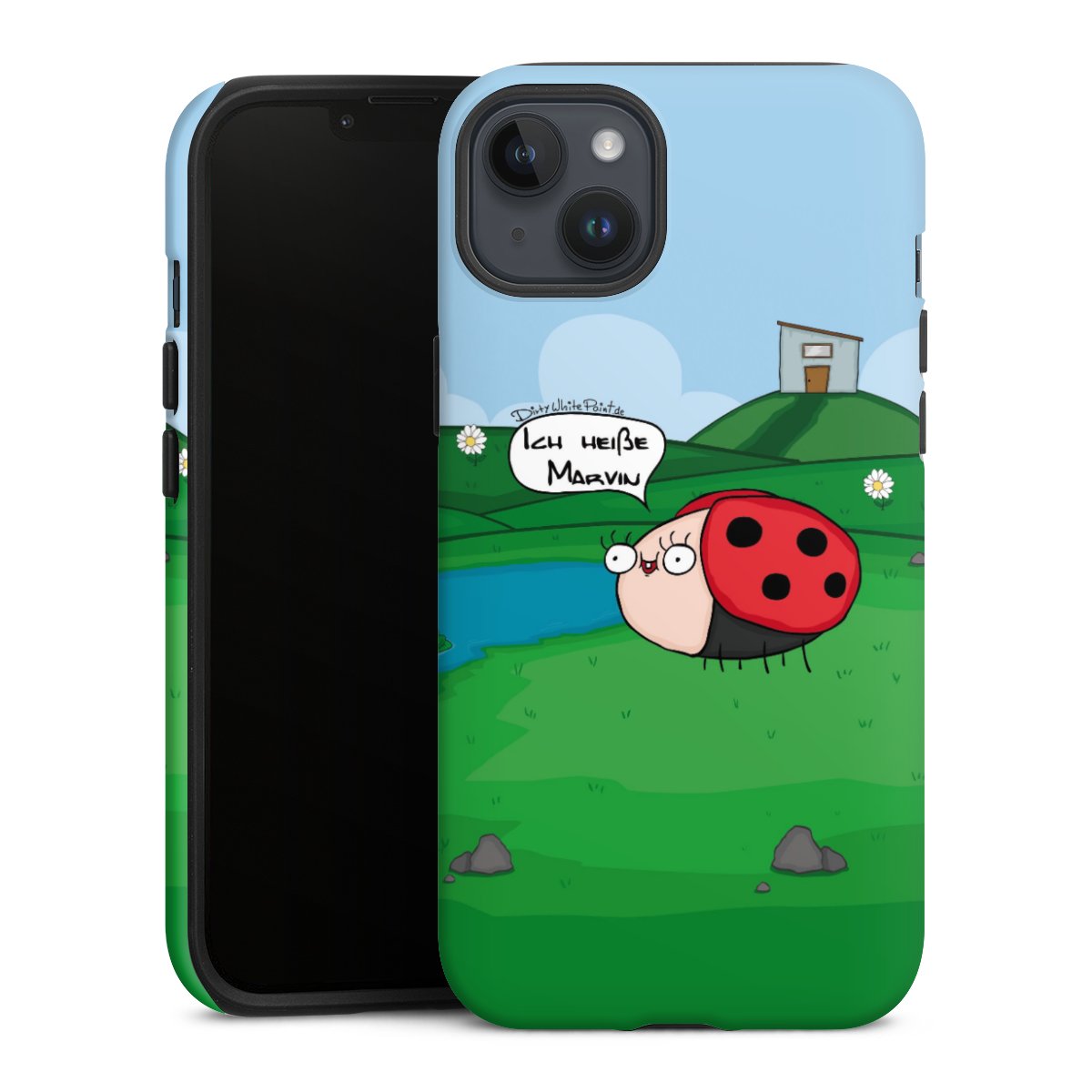 Ob Du Dich nun für Marvin, Günther das Schaf oder doch lieber für die dauerbekiffte Cannabiene entscheidest. Mit einem Motiv von DirtyWhitePaint wird Dein Smartphonen selbst zum Comic.