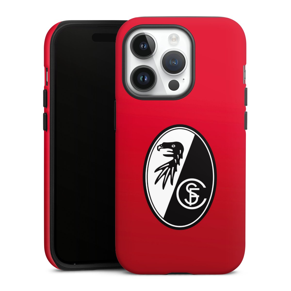 Bei DeinDesign kannst Du Dir eine individuelle SC-Freiburg-Handyhülle aussuchen, auf der das stilvolle schwarz-weiße Logo mit dem Greifenkopf zu sehen ist. Durch eine solche Hülle erhält Dein Smartphone ein unverkennbar individuelles Design. Der SC-Freiburg-Shop bietet lizensierte Fanartikel für alle Fans der Breisgau-Brasilianer.