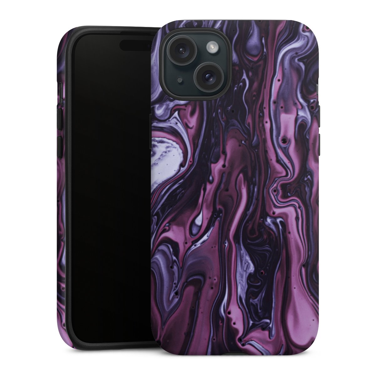 Unsere sicherste Schutzhülle vereint die Vorteile der Silikonhülle mit den Vorzügen des Premium Cases und besteht aus zwei Teilen: Innen federt der flexible Silikonkern aus robustem TPU (thermoplastisches Polyurethan) zuverlässig Stöße und Stürze ab, außen sorgt die widerstandsfähige und langlebige Hartschale aus Polycarbonat für zusätzliche Stabilität. Die Oberfläche der insgesamt 2,6 mm starken Hülle fühlt sich angenehm glatt an und macht das Tough Case zu einem echten Handschmeichler. Die Handyhülle ist in glänzend und matt erhältlich, der Silikoneinleger ist Schwarz.