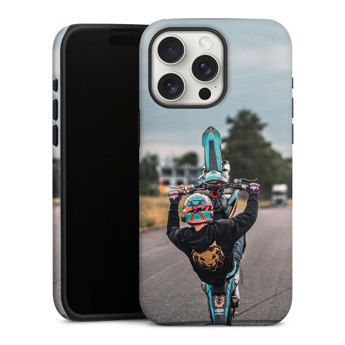 Bei dieser Handyhülle nutzen wird den besonders langlebigen Sublimationsdruck. Dieses raffinierte Druckverfahren sticht durch sein hochwertiges, gestochen scharfes Druckbild in brillanten Farben hervor. Der Druckbereich umfasst die ganze Hartschale inklusive der Ecken und Kanten, lediglich der Silikon-Einleger bleibt einfarbig schwarz. Wähle für Dein Design entweder eines unserer exklusiven Shop-Motive, oder werde kreativ und gestalte Dein Wunschdesign zum Beispiel mit Fotos und Overlays selbst.