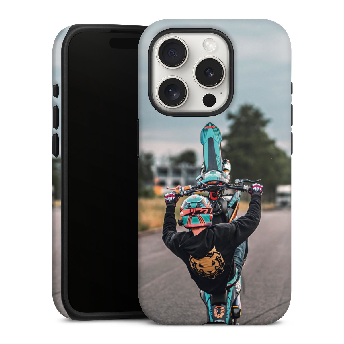 Bei dieser Handyhülle nutzen wird den besonders langlebigen Sublimationsdruck. Dieses raffinierte Druckverfahren sticht durch sein hochwertiges, gestochen scharfes Druckbild in brillanten Farben hervor. Der Druckbereich umfasst die ganze Hartschale inklusive der Ecken und Kanten, lediglich der Silikon-Einleger bleibt einfarbig schwarz. Wähle für Dein Design entweder eines unserer exklusiven Shop-Motive, oder werde kreativ und gestalte Dein Wunschdesign zum Beispiel mit Fotos und Overlays selbst.