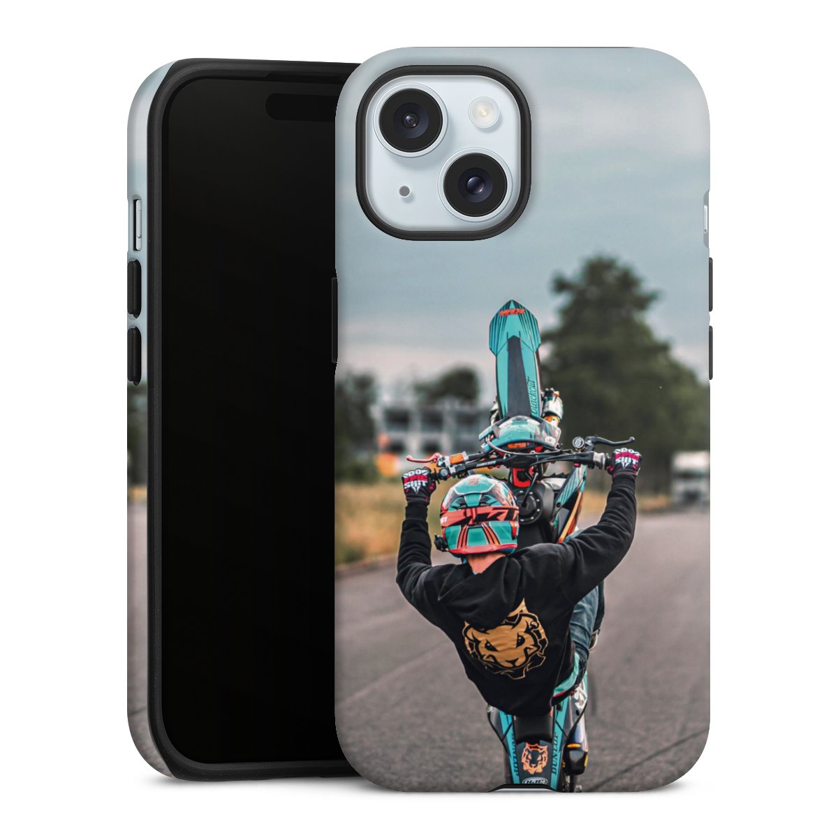 Bei dieser Handyhülle nutzen wird den besonders langlebigen Sublimationsdruck. Dieses raffinierte Druckverfahren sticht durch sein hochwertiges, gestochen scharfes Druckbild in brillanten Farben hervor. Der Druckbereich umfasst die ganze Hartschale inklusive der Ecken und Kanten, lediglich der Silikon-Einleger bleibt einfarbig schwarz. Wähle für Dein Design entweder eines unserer exklusiven Shop-Motive, oder werde kreativ und gestalte Dein Wunschdesign zum Beispiel mit Fotos und Overlays selbst.