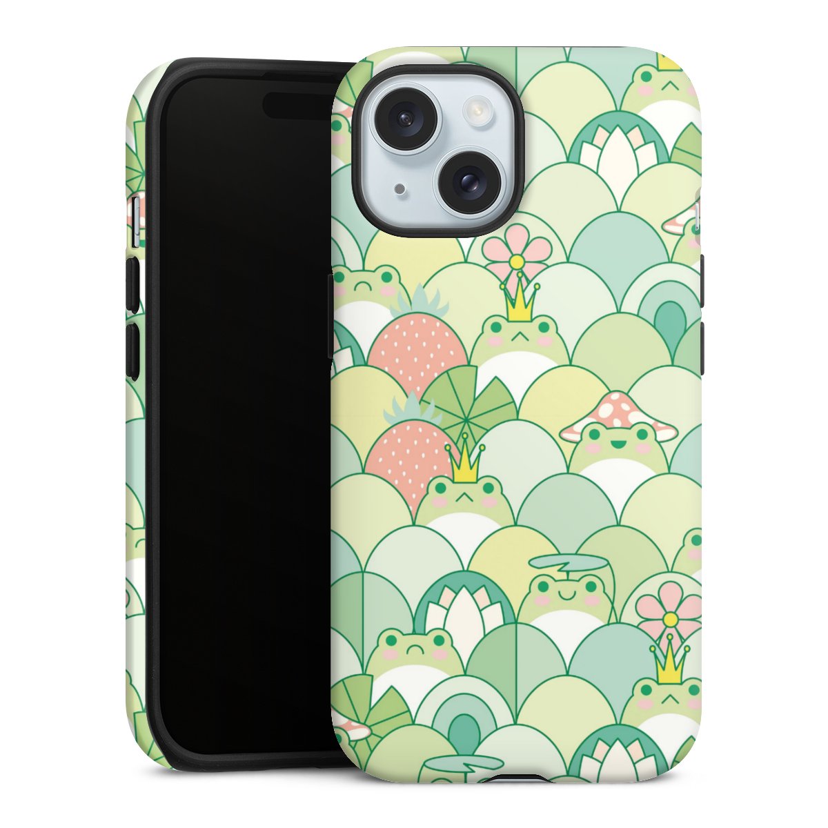 Unsere sicherste Schutzhülle vereint die Vorteile der Silikonhülle mit den Vorzügen des Premium Cases und besteht aus zwei Teilen: Innen federt der flexible Silikonkern aus robustem TPU (thermoplastisches Polyurethan) zuverlässig Stöße und Stürze ab, außen sorgt die widerstandsfähige und langlebige Hartschale aus Polycarbonat für zusätzliche Stabilität. Die Oberfläche der insgesamt 2,6 mm starken Hülle fühlt sich angenehm glatt an und macht das Tough Case zu einem echten Handschmeichler. Die Handyhülle ist in glänzend und matt erhältlich, der Silikoneinleger ist Schwarz.