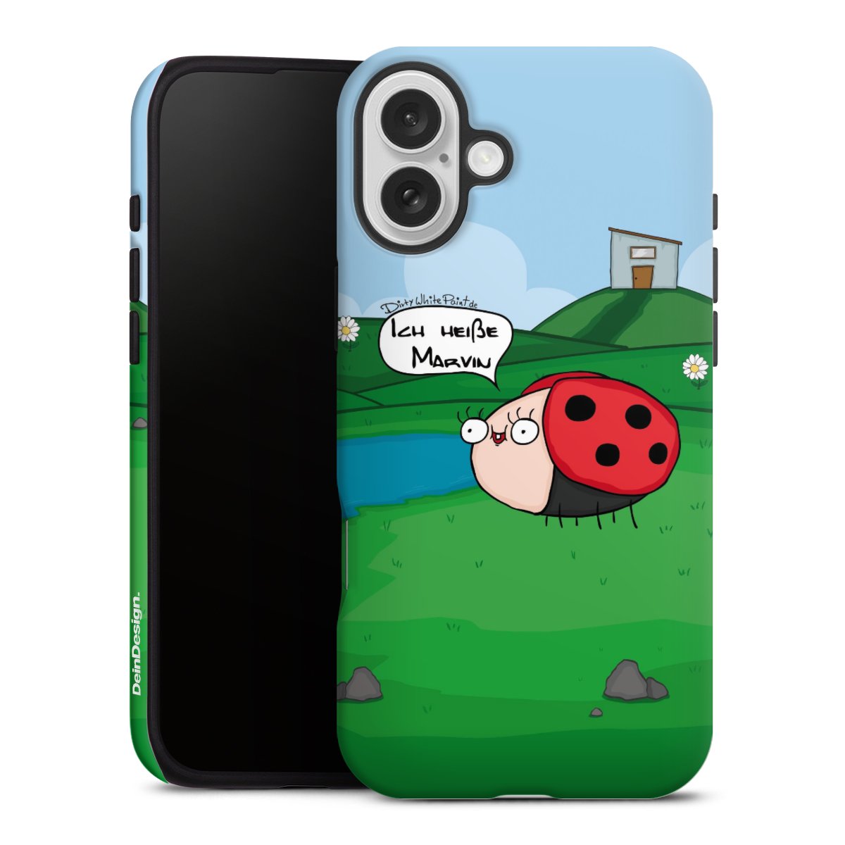 Ob Du Dich nun für Marvin, Günther das Schaf oder doch lieber für die dauerbekiffte Cannabiene entscheidest. Mit einem Motiv von DirtyWhitePaint wird Dein Smartphonen selbst zum Comic.
