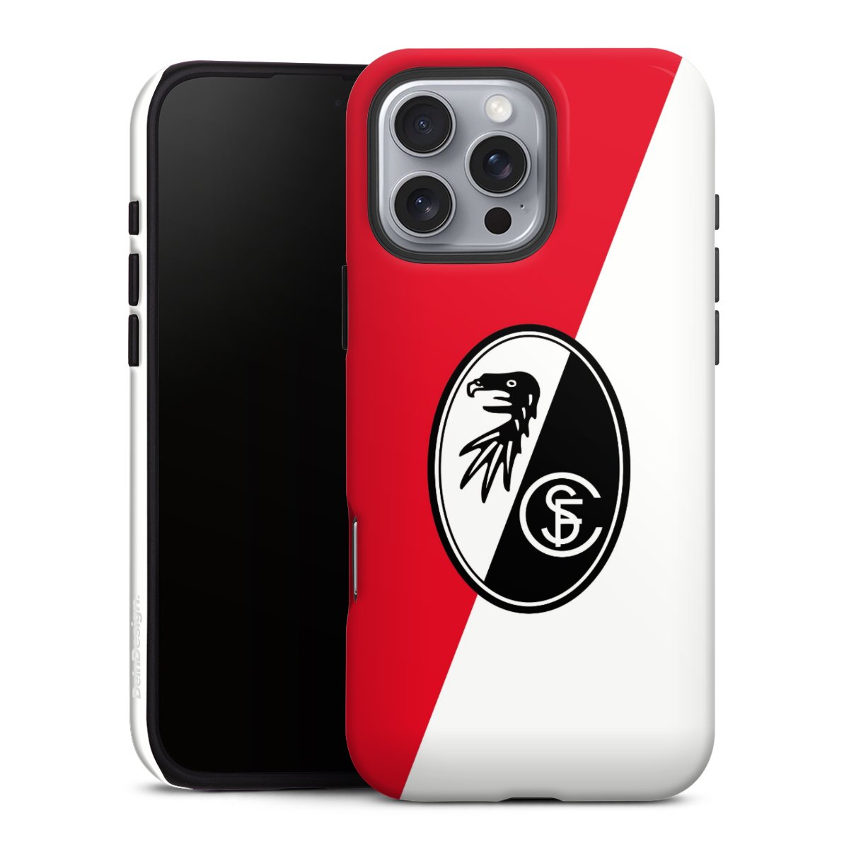 Bei DeinDesign kannst Du Dir eine individuelle SC-Freiburg-Handyhülle aussuchen, auf der das stilvolle schwarz-weiße Logo mit dem Greifenkopf zu sehen ist. Durch eine solche Hülle erhält Dein Smartphone ein unverkennbar individuelles Design. Der SC-Freiburg-Shop bietet lizensierte Fanartikel für alle Fans der Breisgau-Brasilianer.