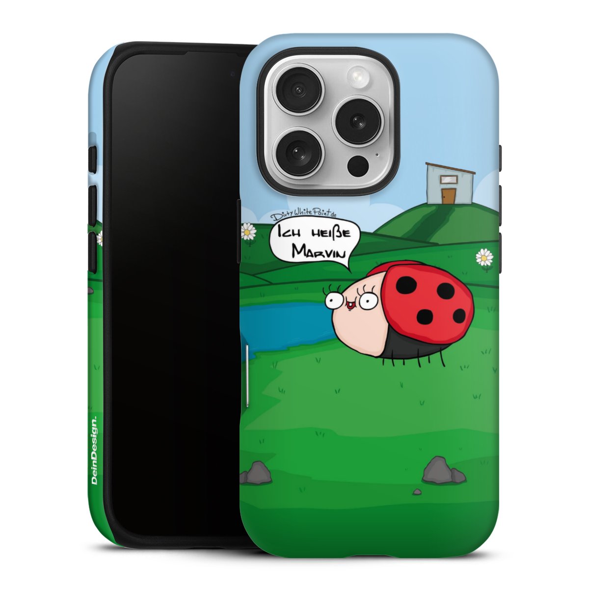 Ob Du Dich nun für Marvin, Günther das Schaf oder doch lieber für die dauerbekiffte Cannabiene entscheidest. Mit einem Motiv von DirtyWhitePaint wird Dein Smartphonen selbst zum Comic.