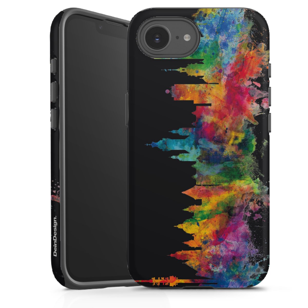 Bei dieser Handyhülle nutzen wird den besonders langlebigen Sublimationsdruck. Dieses raffinierte Druckverfahren sticht durch sein hochwertiges, gestochen scharfes Druckbild in brillanten Farben hervor. Der Druckbereich umfasst die ganze Hartschale inklusive der Ecken und Kanten, lediglich der Silikon-Einleger bleibt einfarbig schwarz. Wähle für Dein Design entweder eines unserer exklusiven Shop-Motive, oder werde kreativ und gestalte Dein Wunschdesign zum Beispiel mit Fotos und Overlays selbst.